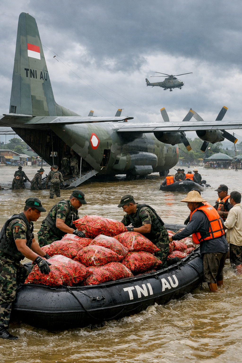 Sumber: Antara News (2025). Laporan penyerapan dan pengiriman cabai Aceh menggunakan pesawat Hercules TNI AU sebagai bagian dari distribusi bantuan pascabencana; Berita Jakarta (2025). Laporan Pemerintah Provinsi DKI Jakarta terkait pembelian dan distribusi cabai dari Aceh untuk stabilisasi harga dan penyerapan hasil panen petani; Radar Malioboro Jawa Pos Group (2025). Pemberitaan inisiatif Ferry Irwandi dalam pemanfaatan penerbangan balik (backhaul) pesawat bantuan untuk mengangkut cabai petani Aceh ke Jakarta; Herald Indonesia (2025). Laporan gagasan barter udara Ferry Irwandi yang memanfaatkan armada bantuan kemanusiaan agar tidak kembali kosong dan berfungsi sebagai jalur distribusi komoditas pertanian; Christopher (2016). Logistics & Supply Chain Management. Pearson Education, yang menjelaskan konsep backhaul sebagai strategi optimasi kapasitas dan pengurangan empty return dalam sistem logistik; Kovács & Spens (2011). Studi humanitarian logistics tentang pemanfaatan armada bantuan dan fleksibilitas jaringan distribusi dalam kondisi bencana.